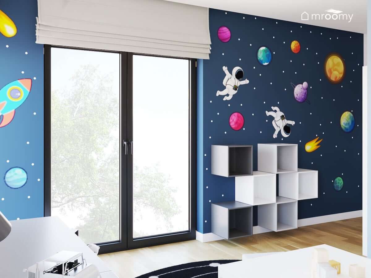 Jedna ze ścian w całości pokryta jest międzygwiezdną tapetą oraz naklejkami z kosmonautami, planetami i rakietami.