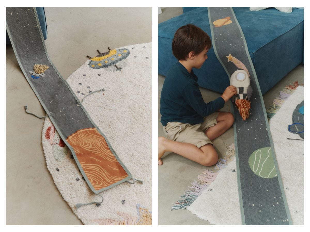 Kolekcja „Mom, I want to be an astronaut” od Lorena Canals, to starannie zaprojektowana seria produktów do pokoju młodego fana lub fanki kosmosu. Rakiety, planety, UFO, czy produkty z motywem układu słonecznego doskonale wpasują się we wnętrza młodych marzycieli. Każdy produkt wykonywany jest ręcznie z naturalnych włókien z recyklingu oraz zaprojektowany jest w taki sposób, by nie tylko pełnić funkcję ozdobną, ale również edukacyjną i rozrywkową – czyli idealne rozwiązanie dla każdego rodzica ceniącego sobie wszechstronny rozwój dziecka.
