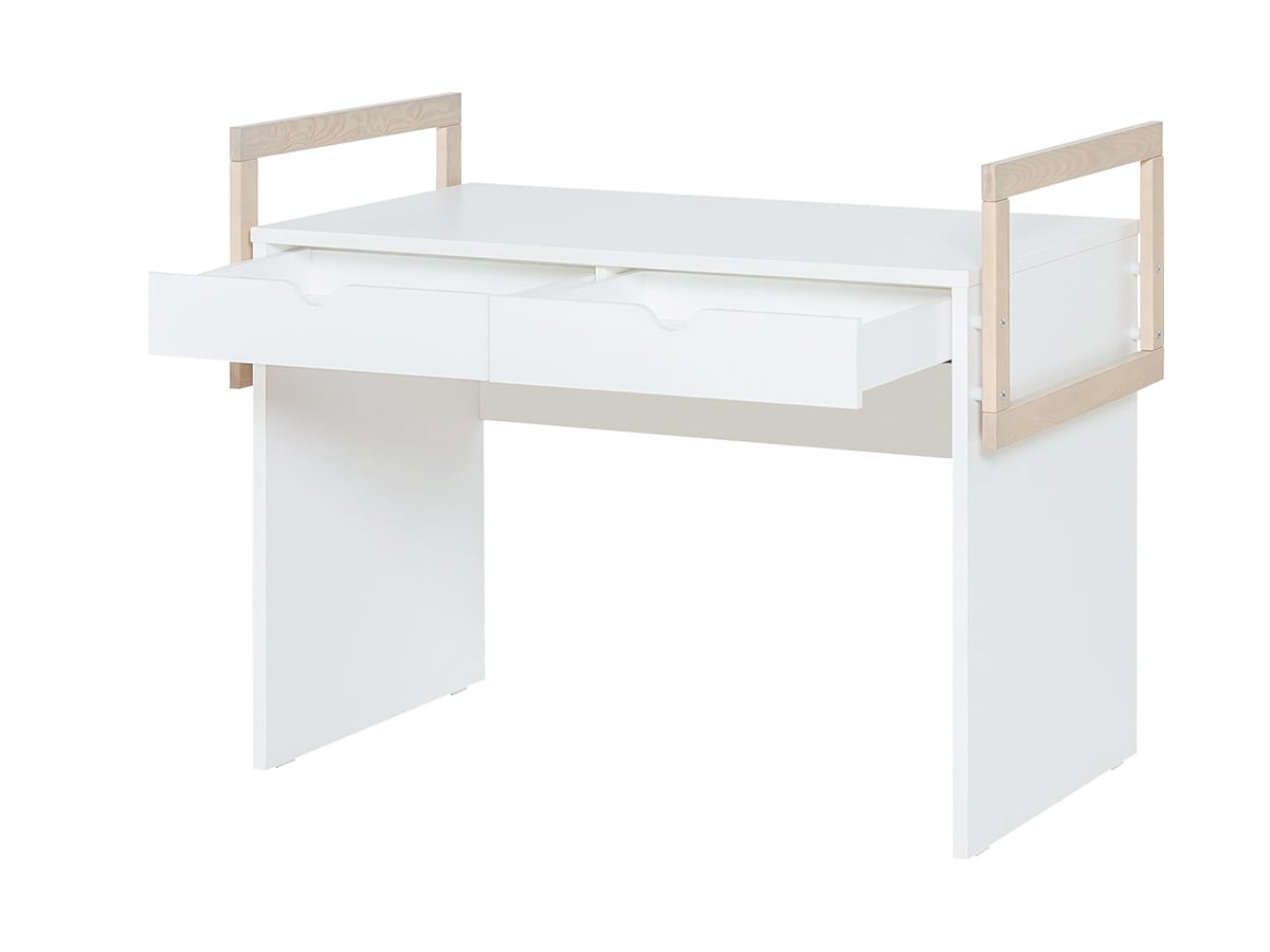 Charakterystyczne drabinki z drewna sosnowego nie tylko dodają meblowi unikalnego charakteru, ale również zwiększają jego funkcjonalność. Dzięki nim dziecko może spersonalizować swoją przestrzeń do nauki, zawieszając dodatkowe akcesoria. Pozwala to utrzymać funkcjonalny charakter pokoju dla dziecka, w którym wszystko ma swoje miejsce.