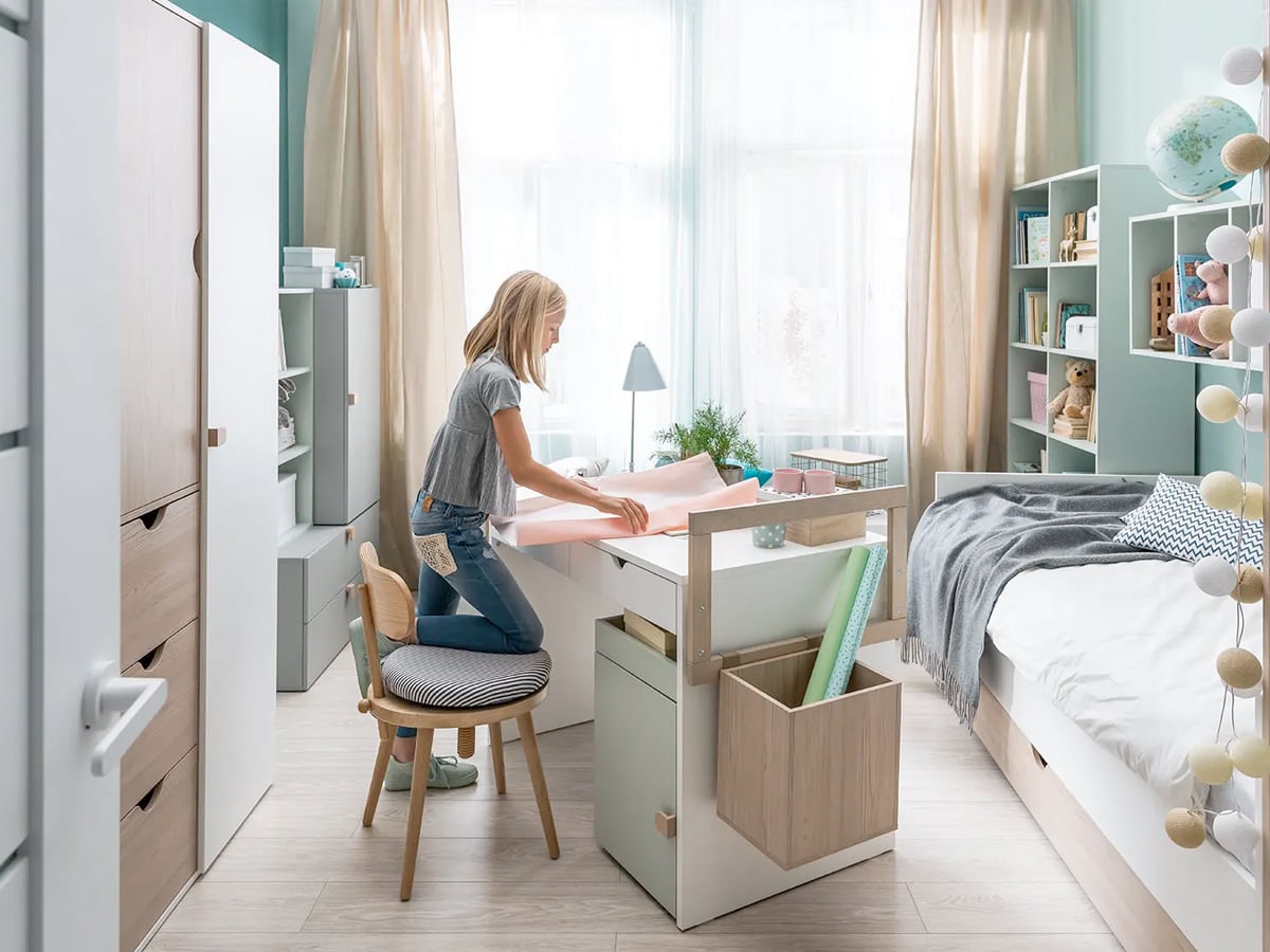 Przygotowanie funkcjonalnej przestrzeni do nauki jest kluczowym elementem w aranżacji pokoju dziecięcego. Biurko 120 Stige to kompaktowe rozwiązanie, które łączy w sobie minimalistyczny design z przemyślanymi rozwiązaniami przechowywania. Idealne nawet do niewielkich pomieszczeń.