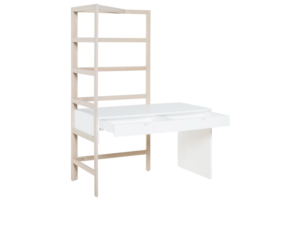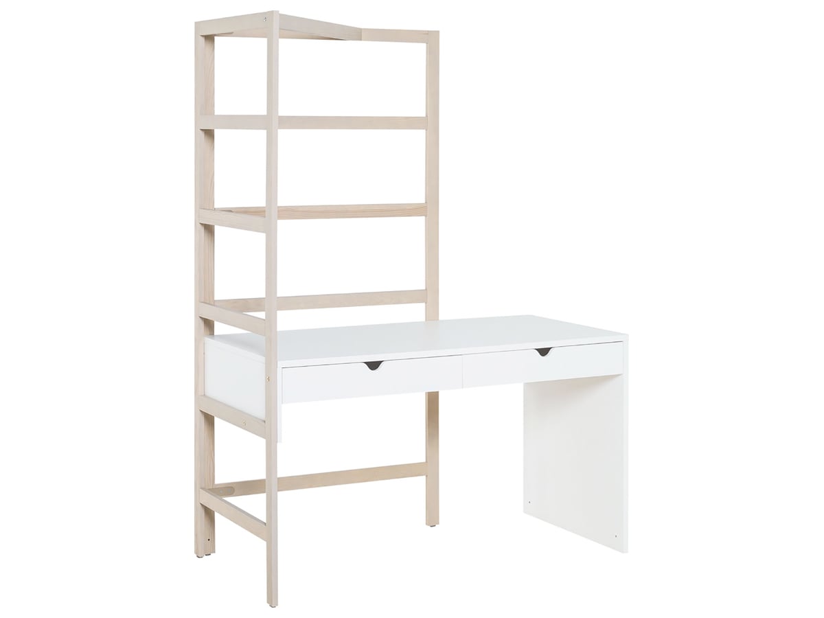 Biurko 140 Stige to przestronne miejsce do pracy i nauki, które sprawdzi się doskonale w pokoju każdego dziecka. Zaprojektowane z myślą o harmonijnym połączeniu funkcjonalności i estetyki, zapewnia wygodną przestrzeń do odrabiania lekcji, przemyślany system przechowywania oraz możliwość personalizacji dzięki akcesoriom. Charakterystyczna drabinka z drewna sosnowego dodaje meblowi oryginalnego charakteru, jednocześnie pełniąc praktyczną funkcję. Dzięki możliwości montażu w wersji prawo- lub lewostronnej, biurko dopasuje się do układu każdego pomieszczenia.