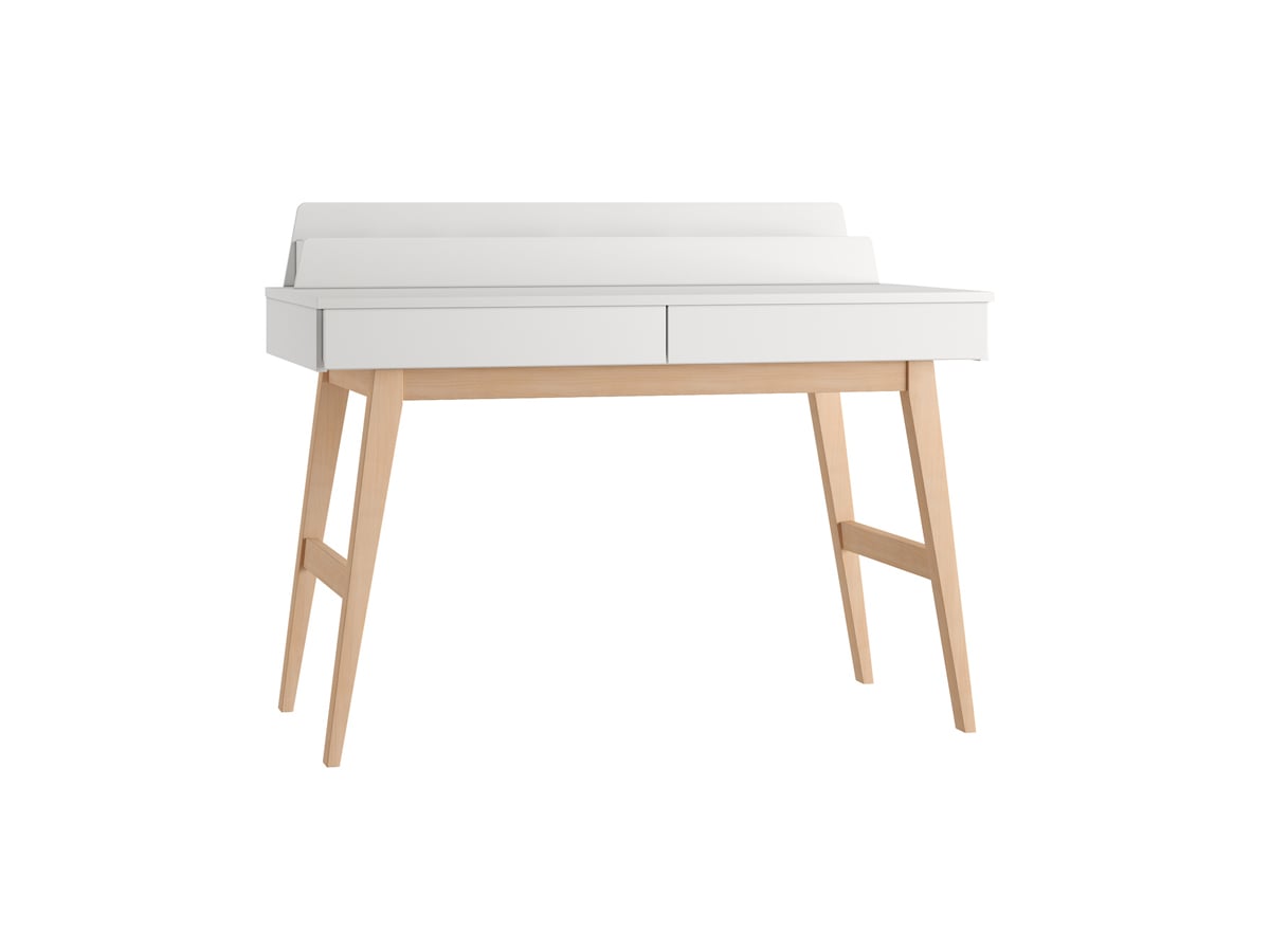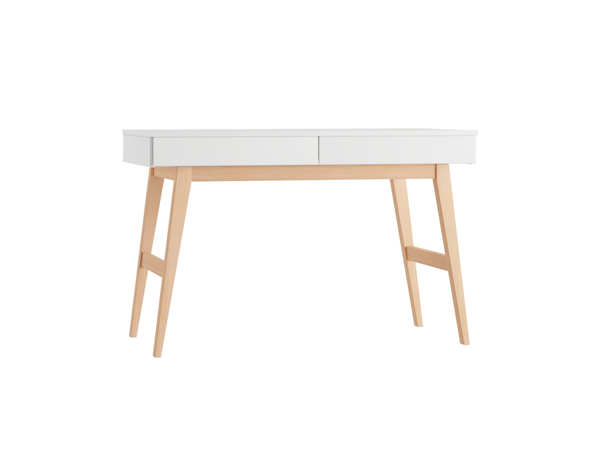 Biurko w skandynawskim stylu, szerokość 125 cm, wyposażone w dwie pojemne szuflady. Sprawdzi się zarówno w pokoju dziecka jak i nastolatka.