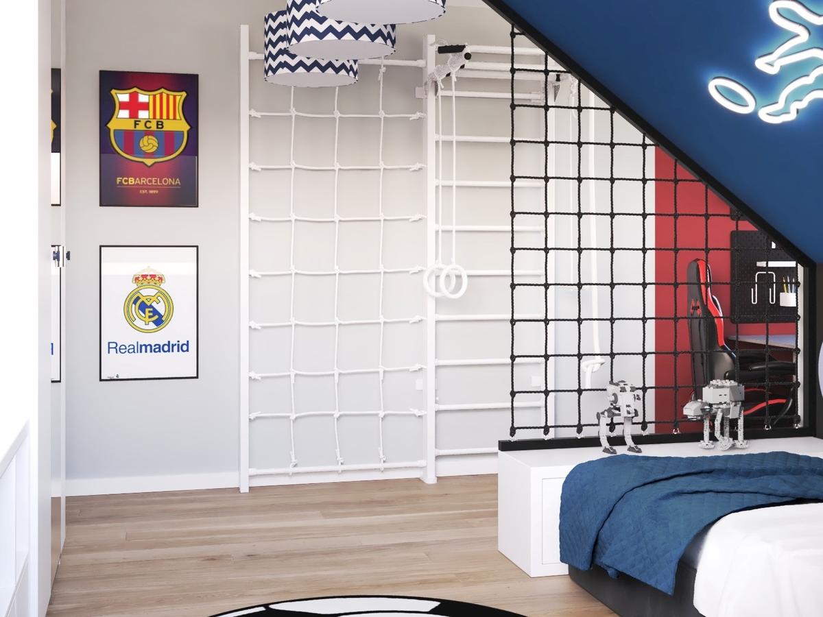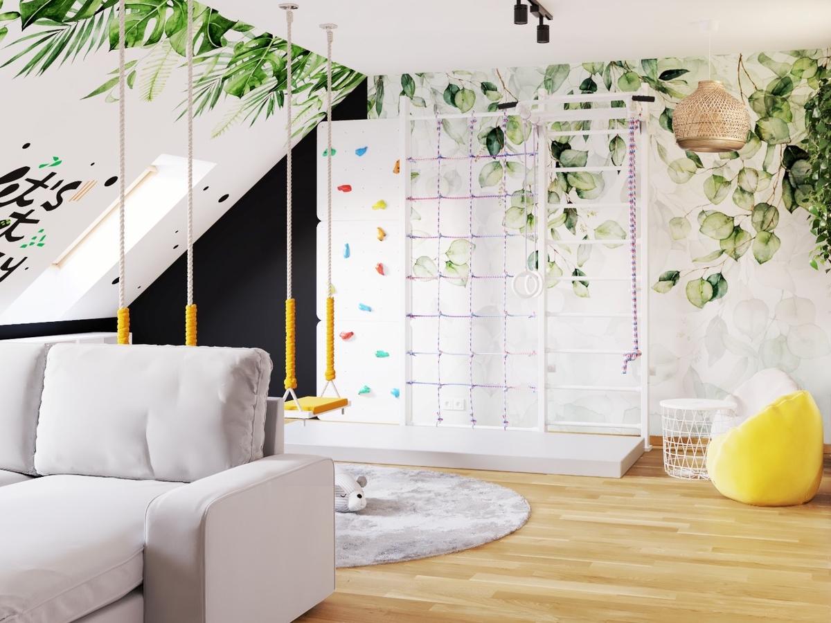 - wyposażenie dodatkowe: drążek nieprzesuwny metalowy, słupek przyścienny, kółka gimnastyczne, lina, trapez.