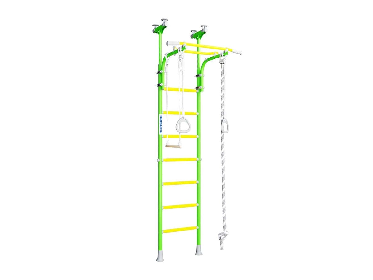 Drabinka gimnastyczna Kometa 5 to prawdziwa gwiazda wśród rozporowych drabinek. Dzięki kompaktowym wymiarom zajmuje minimalną ilość miejsca w pokoju. Rozporowy system montażu pozwala na jej montaż bez wiercenia w ścianach.