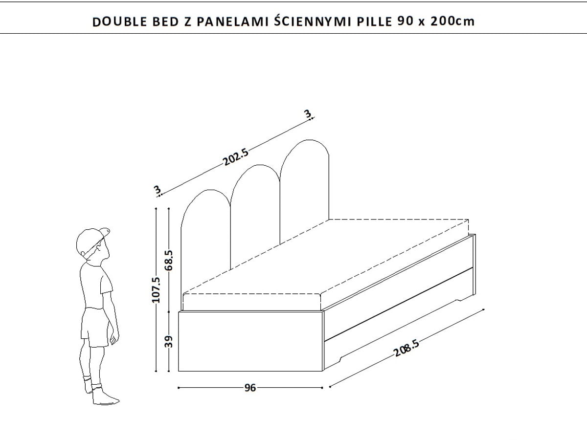 Łóżko Pille Double Bed z panelami ściennymi w skrócie: