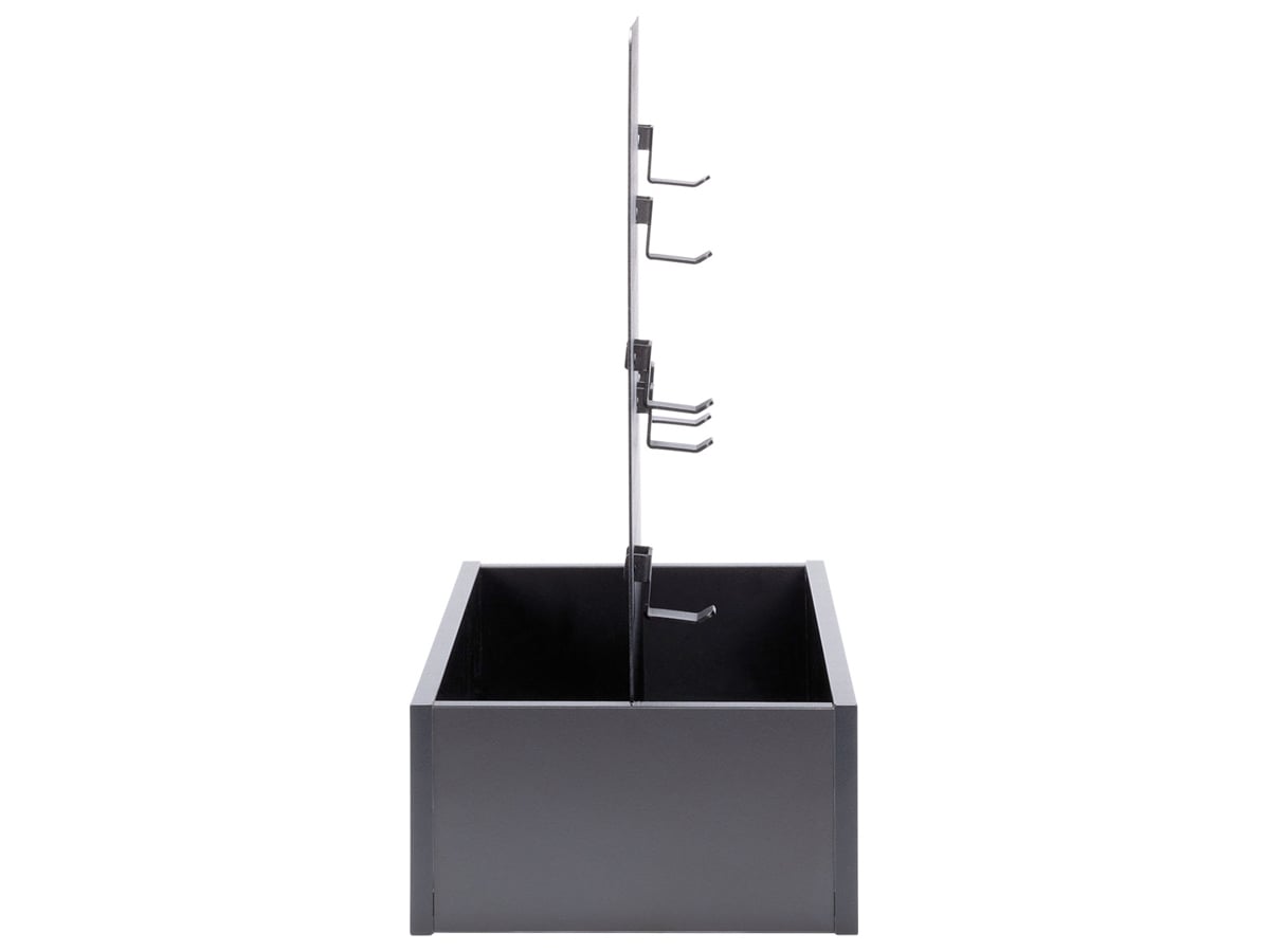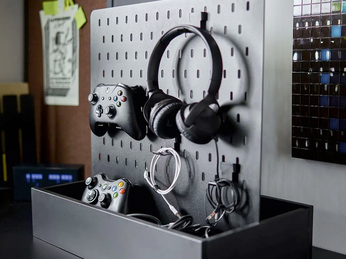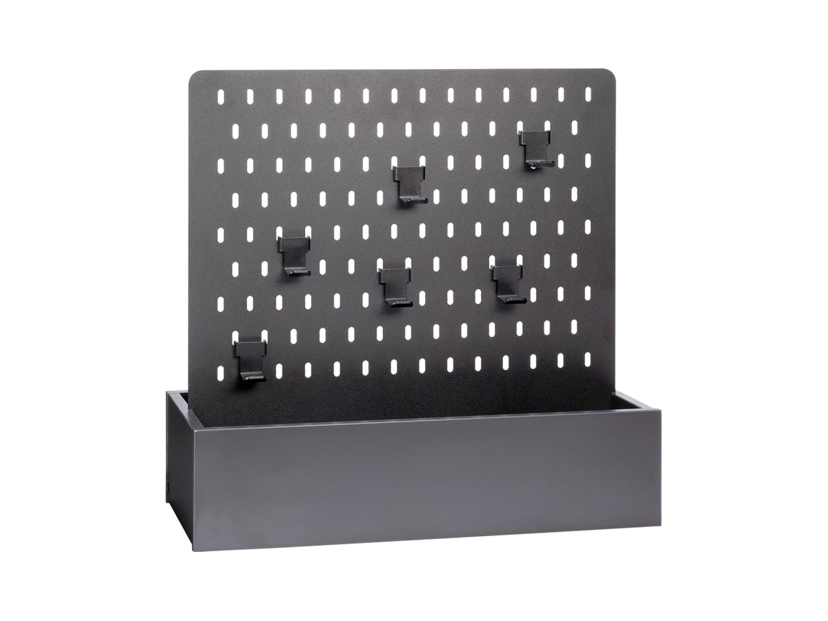 Ekspozytor Young Users to rozwiązanie, które wprowadzi porządek w pokoju Twojego dziecka. Dzięki przemyślanej konstrukcji składającej się z pojemnej skrzynki i perforowanej tablicy z haczykami, wszystkie gamingowe akcesoria znajdą swoje stałe miejsce.