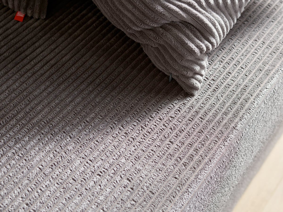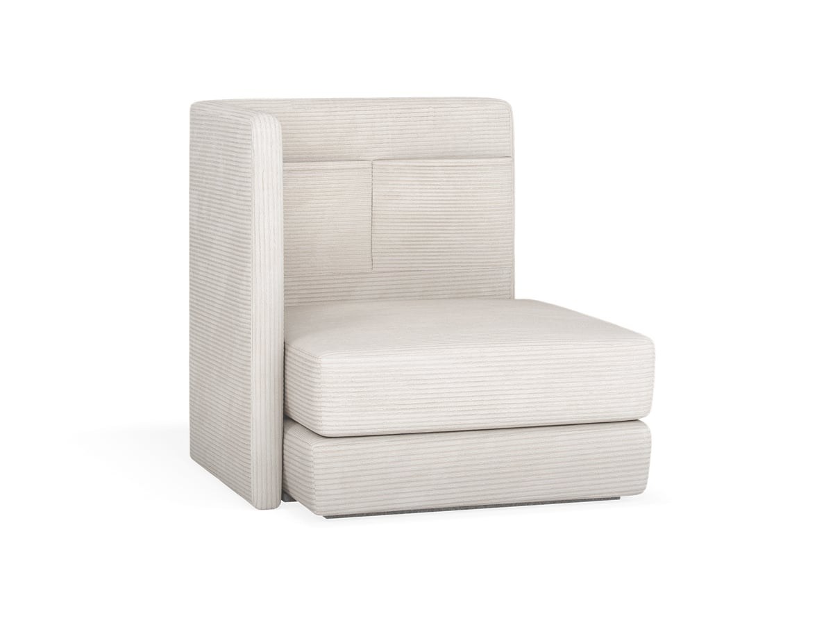 Boki i dno mebla powstały z wytrzymałej płyty meblowej. Poduchy siedziska są wypełnione elastyczną pianką. Wszystkie elementy zostały pokryte tkaniną tapicerską. Spód fotela w tkaninie technicznej fibretex.