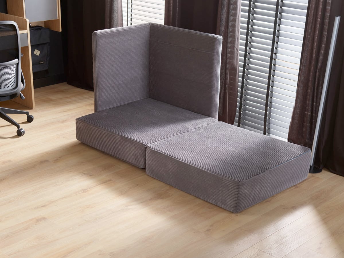 Fotel rozkładany Muve to wielofunkcyjny mebel, który zachwyca sprytnym rozwiązaniem w pokoju dziecięcym. W ciągu dnia służy jako wygodne miejsce do siedzenia, a w przypadku wizyty przyjaciół błyskawicznie zmienia się w dodatkowe łóżko o wymiarach 85×170 cm.