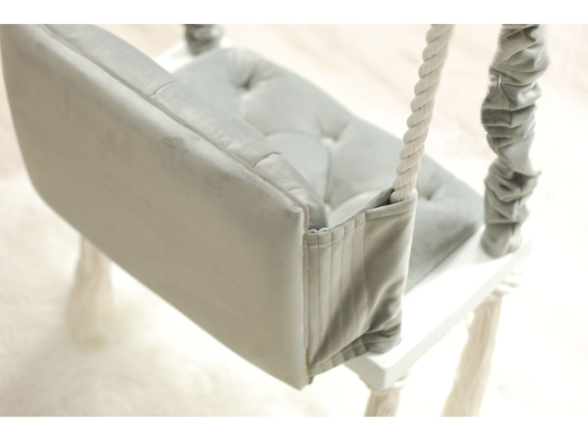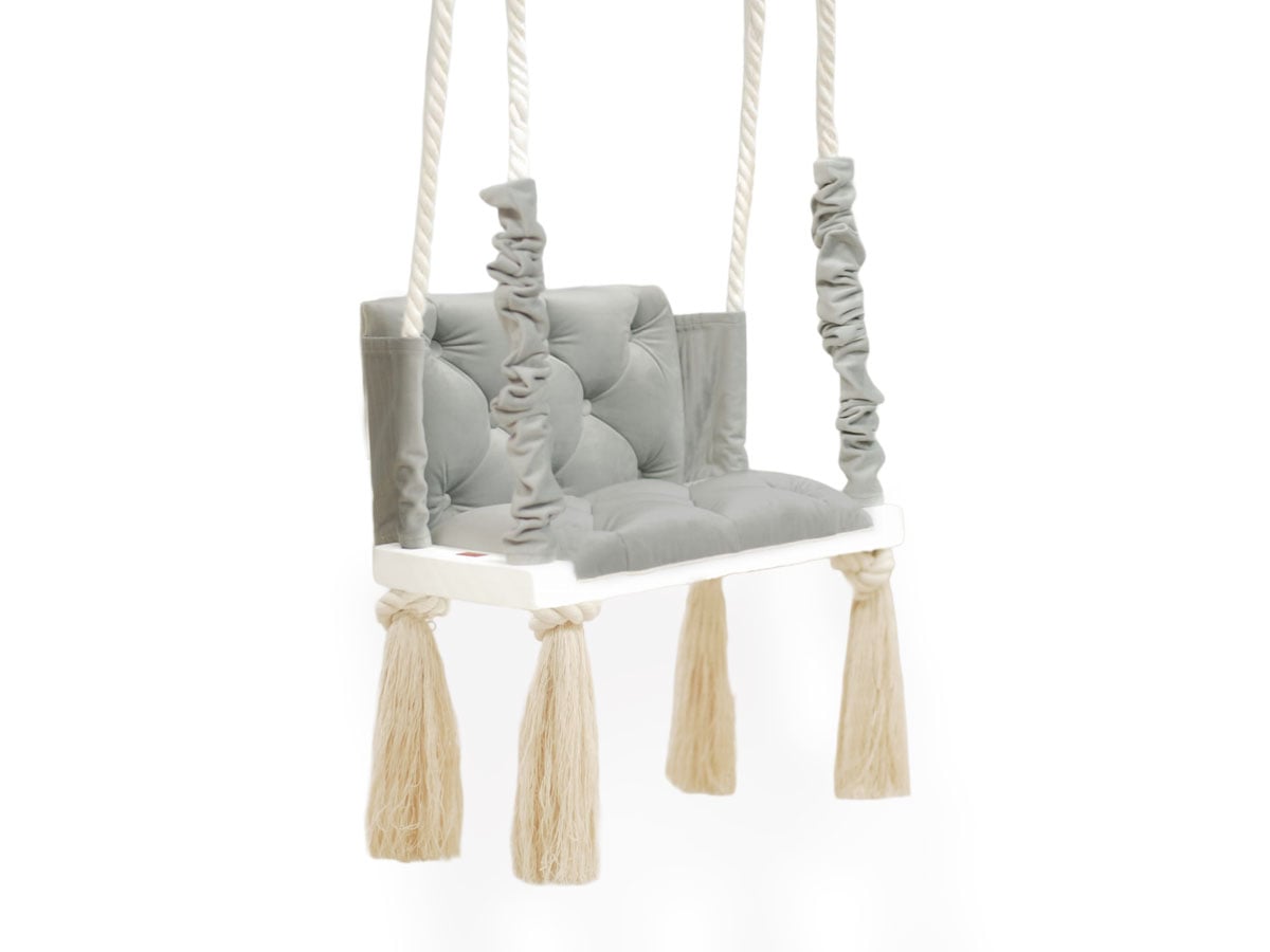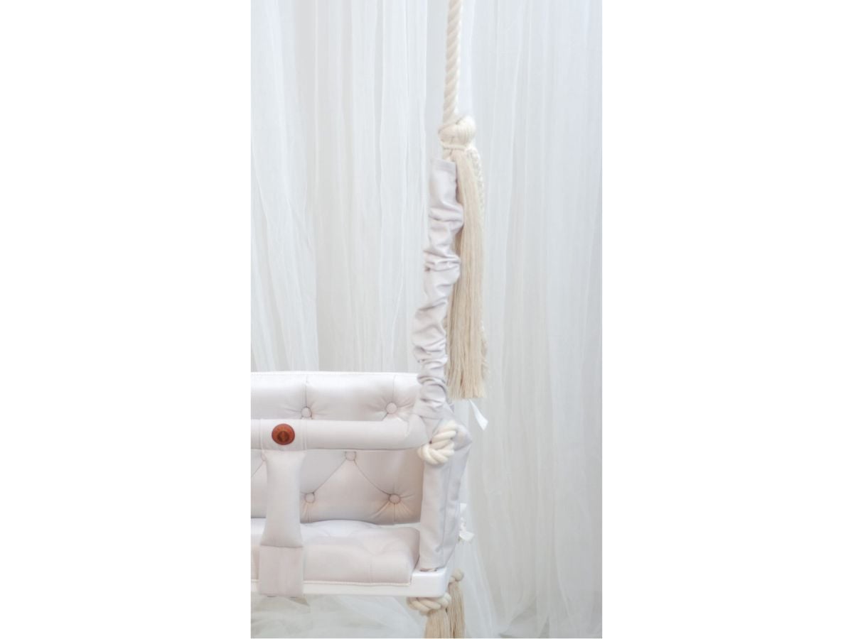 Elegancka tapicerowana pikowana huśtawka z oparciem, to idealne rozwiązanie do pokoju Twojego Dziecka, jeśli cenisz sobie połączenie wysokiej funkcjonalności, bezpieczeństwa, jakości i estetyki.