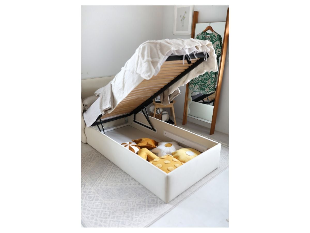 Tapicerowane łóżko z zagłówkiem oraz pojemnikiem na pościel. Świetnie sprawdzi się w pokoju dziecka lub nastolatka, nadając mu niezwykły klimat.