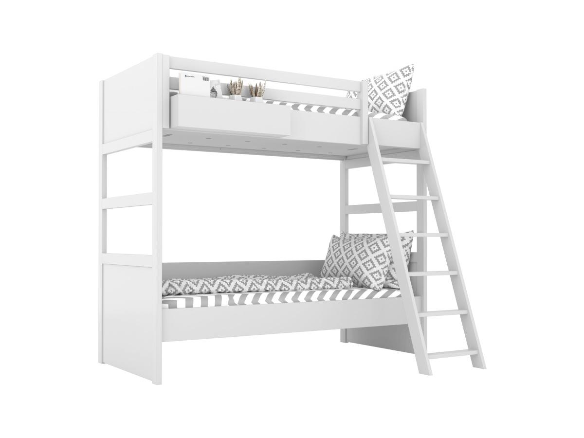 Łóżko piętrowe z kolekcji Simone, idealnie sprawdzi się w pokoju rodzeństwa a ponadczasowa biel pozwoli dopasować mebel do każdej aranżacji.
