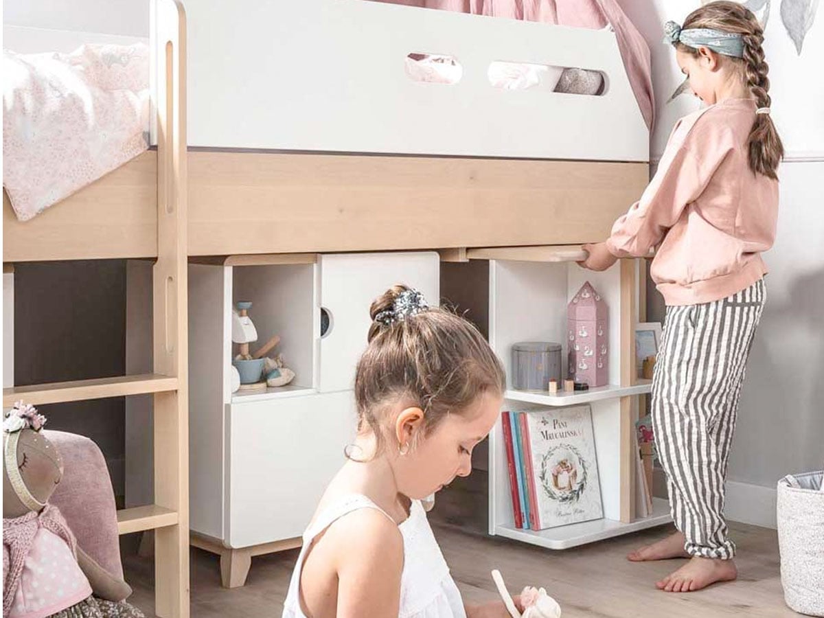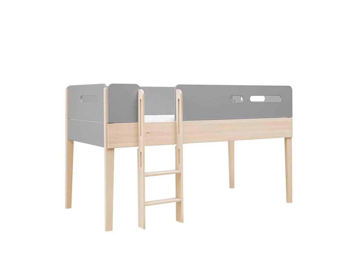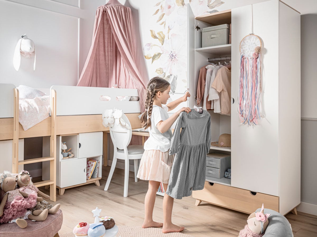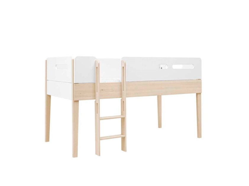 Praktyczne łóżko podniesione Minimondo w skandynawskim stylu. Pod powierzchnią spania zmieścisz meble lub biurko z kolekcji Minimondo, dzięki czemu stworzysz wygodną przestrzeń do nauki i przechowywania.