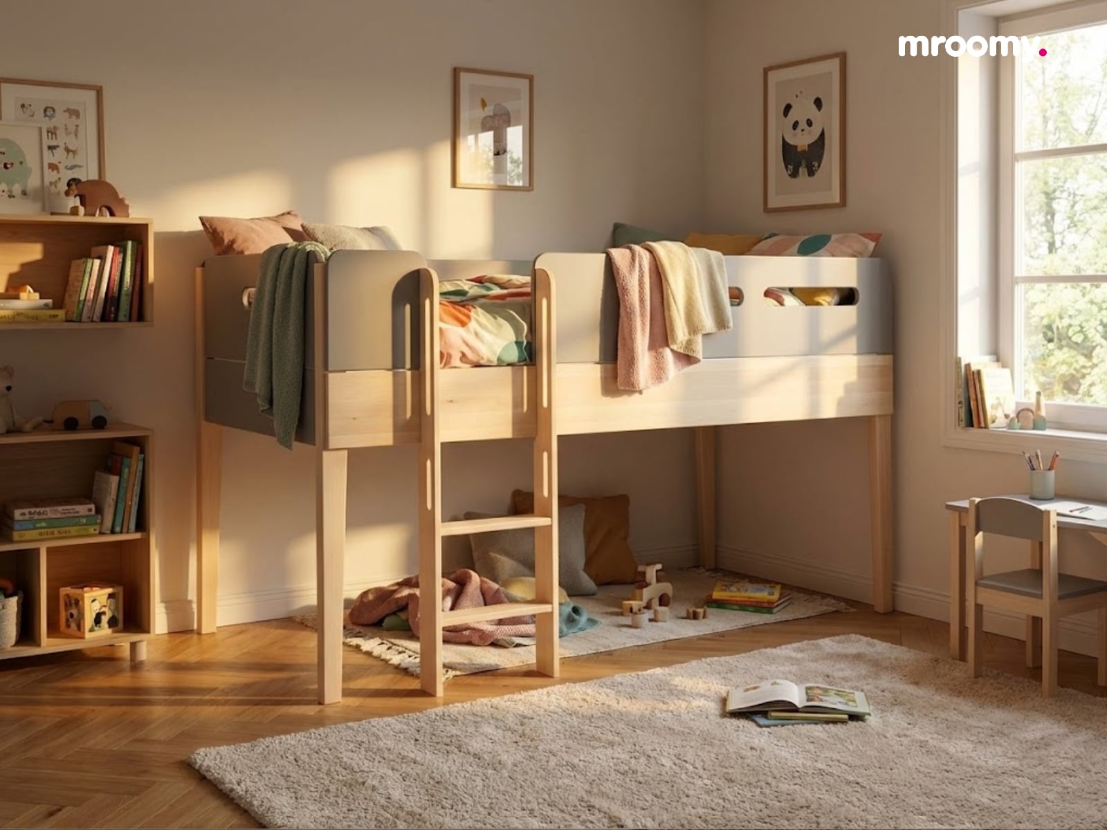 Wybierz łóżko podniesione Minimondo, aby zyskać wygodne miejsce snu i dodatkową przestrzeń do przechowywania lub nauki. To sprytne rozwiązanie, które sprawdzi się nawet w niewielkich pokojach, zapewniając jednocześnie estetyczny wygląd i komfort.