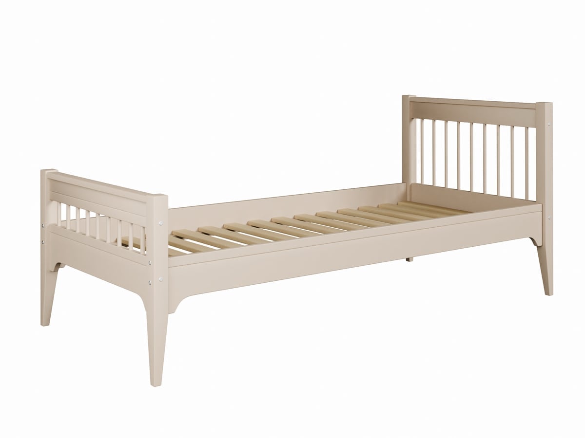 Łóżko Carmela dostępne jest w czterech starannie dobranych kolorach: klasycznej bieli, delikatnym jasnym szarym, ciepłym kaszmirze oraz modnej szałwii. Każdy odcień został zaprojektowany tak, by harmonijnie komponować się z różnorodnymi aranżacjami pokoju dziecięcego.