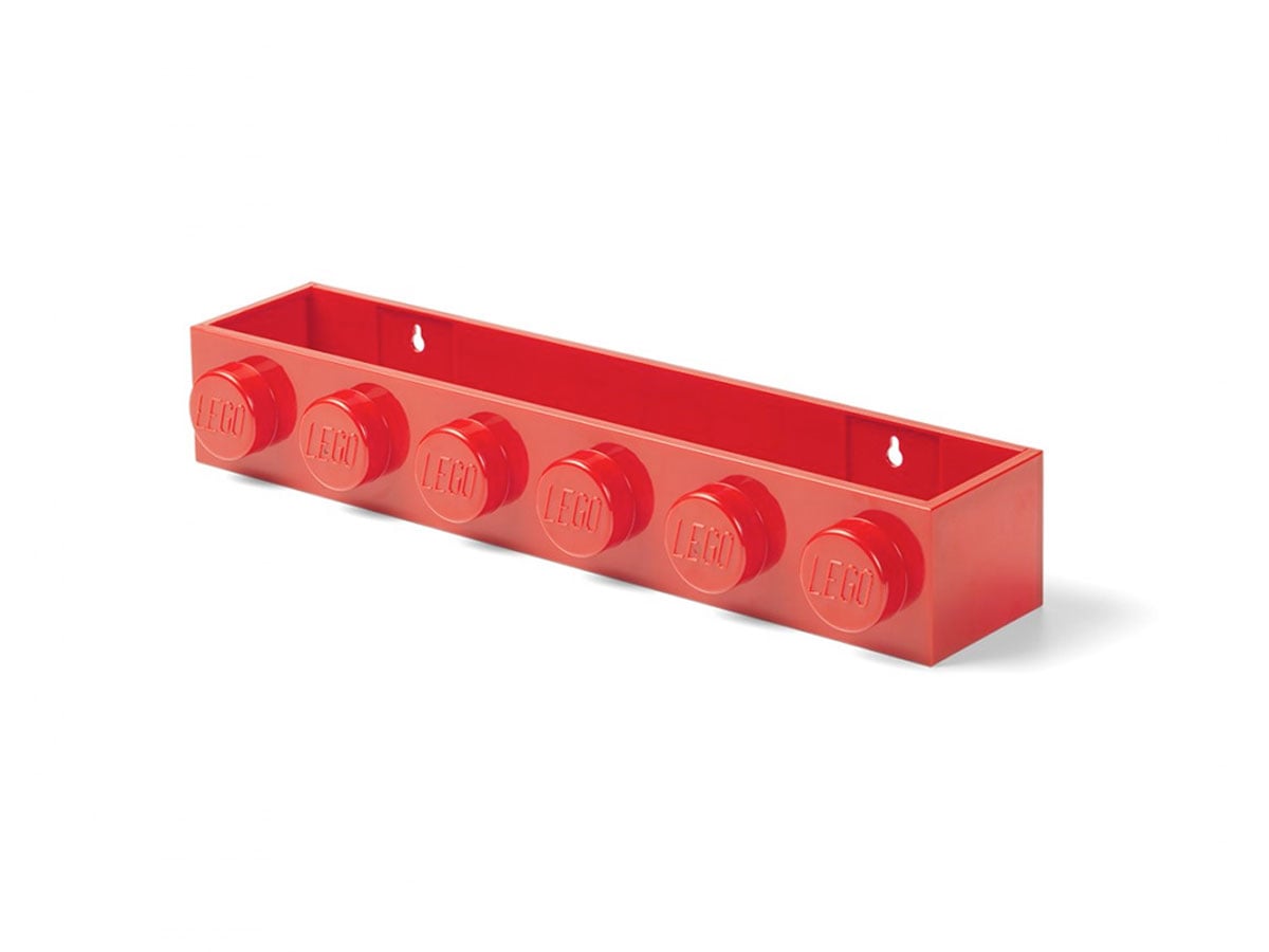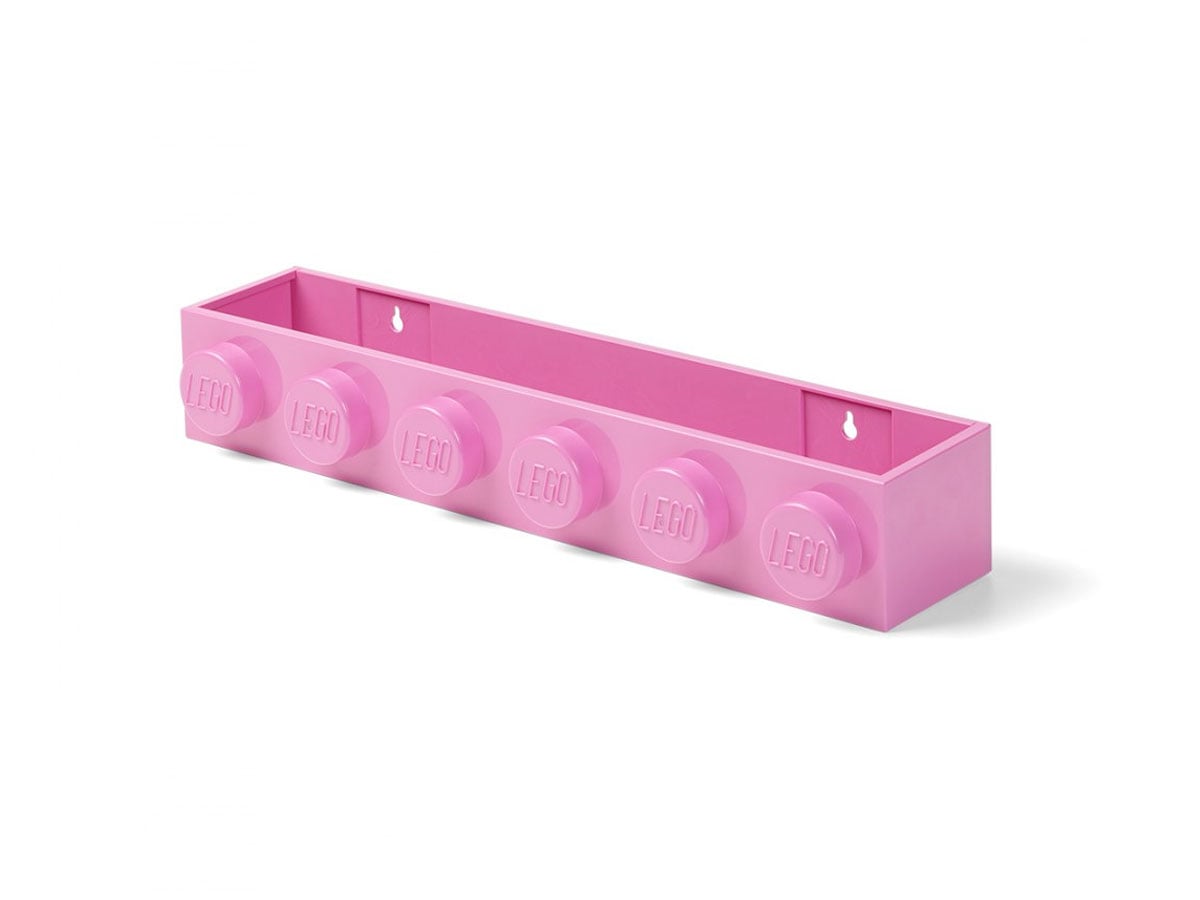 Warto zaprosić tę długą półkę LEGO na ścianę, aby dołożyć do wnętrza mały akcent, który wywołuje uśmiech przy każdym spojrzeniu.