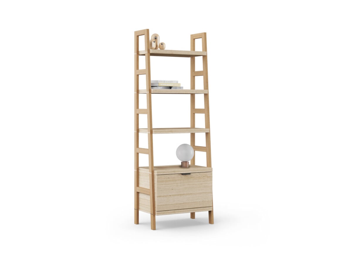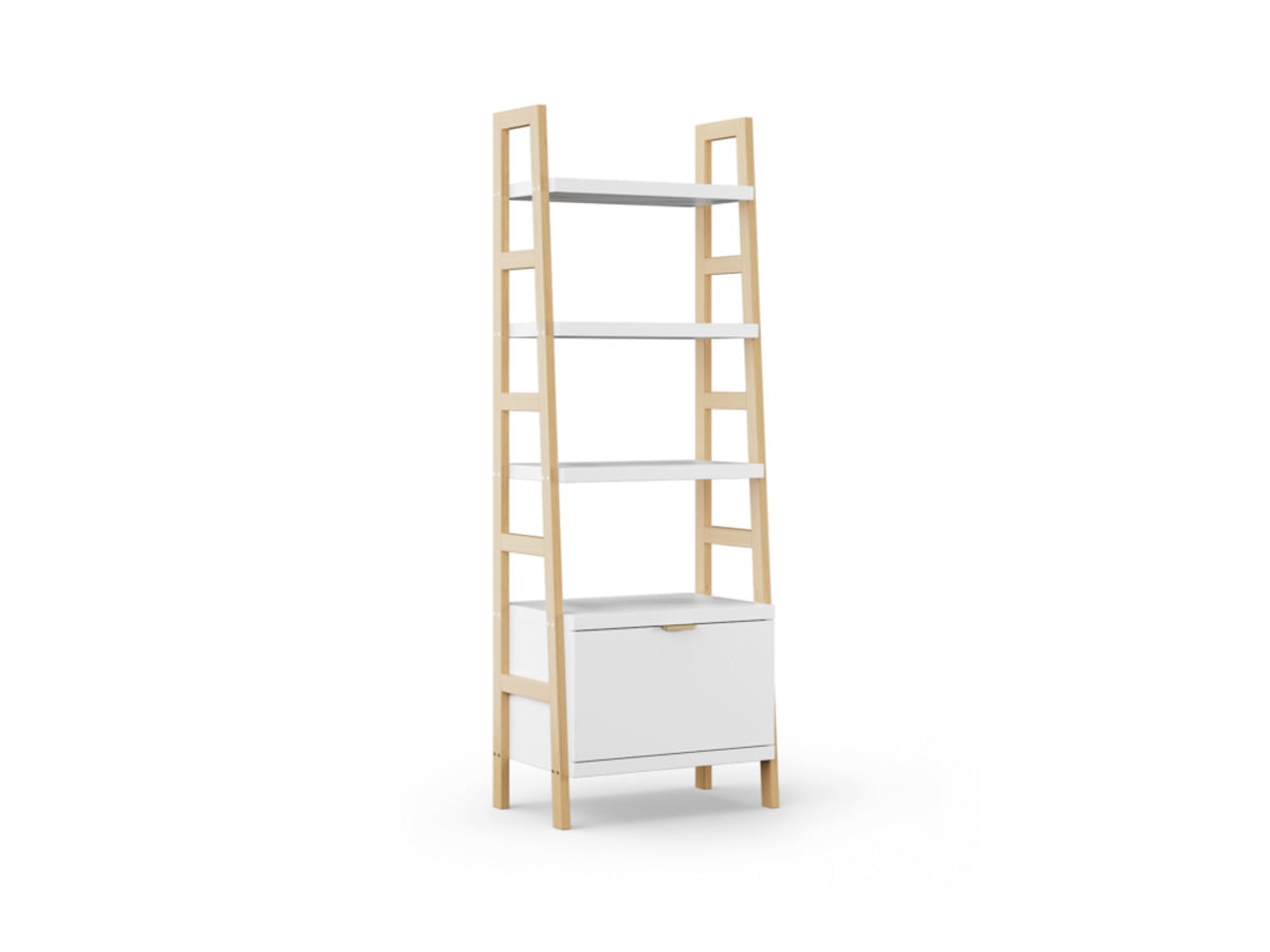 Minimalistyczny i funkcjonalny regał będzie idealnym miejscem na przechowywanie w pokoju dziecka. Ma formę zabudowanej drabinki, doskonale sprawdzi się jako biblioteczka lub półka na dekoracje i pamiątki. Dodatkowo posiada pojemną szufladę gdzie zmieszczą się klocki i zabawki albo skarby nastolatków. Oszczędza miejsce i wygląda zjawiskowo!