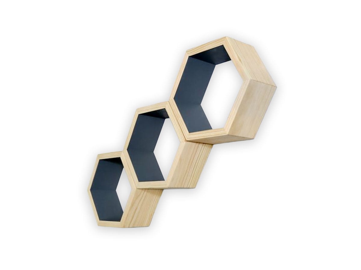 Sosnowe półki HEKSAGON – komplet 3 szt.