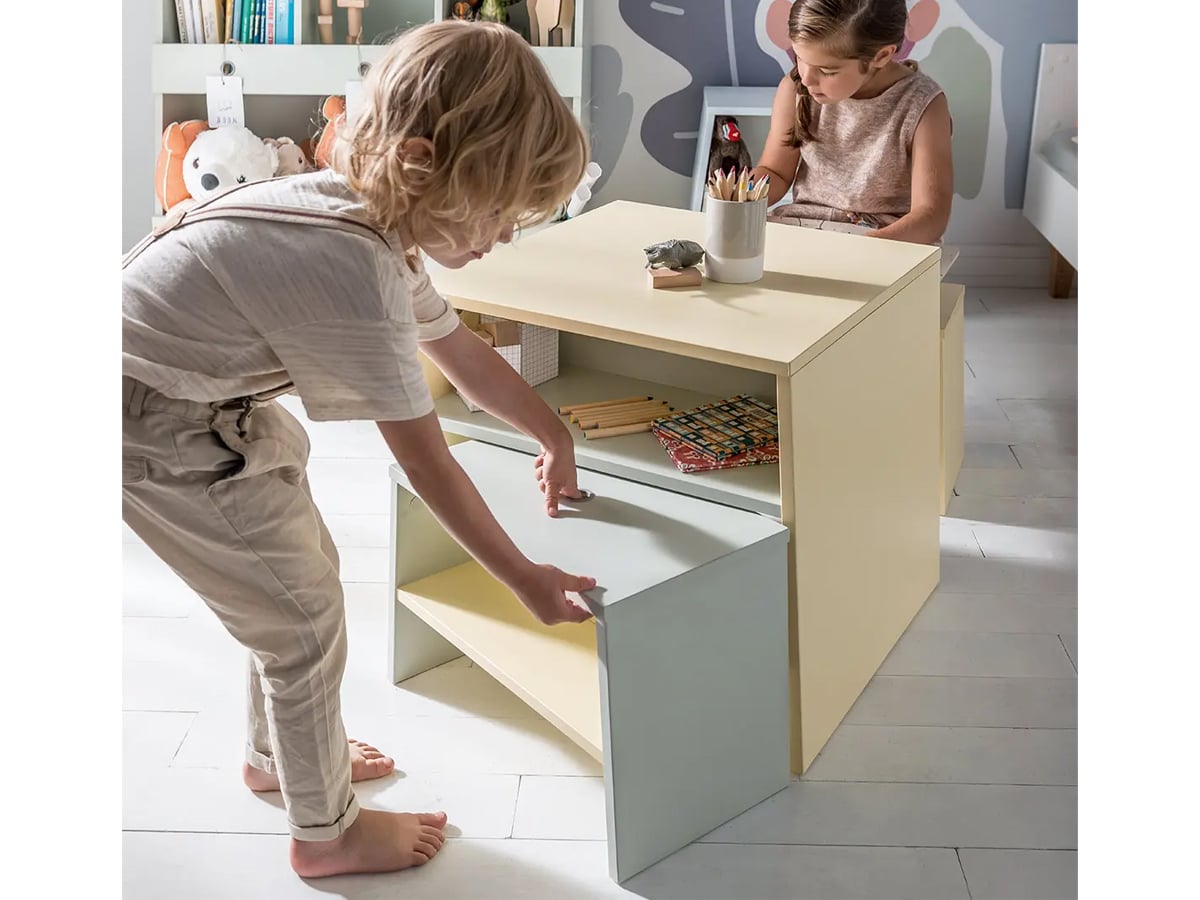 Praktyczny i kolorowy Taboret Tuli to wielofunkcyjny mebel do pokoju dziecka. Służy jako siedzisko, pomocnik, mobilny stolik, a dzięki kompaktowym wymiarom dopasuje się do każdej przestrzeni. Dostępny w trzech wariantach kolorystycznych.