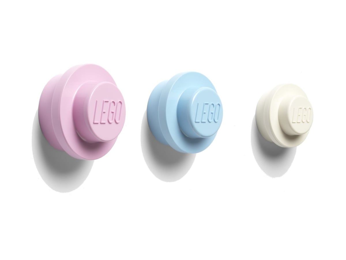 Wieszaki łatwo rozmieścisz na ścianie, a jeśli zechcesz, połączysz kilka kompletów i stworzysz własną kompozycję LEGO® nad łóżkiem, biurkiem lub w innym praktycznym miejscu.